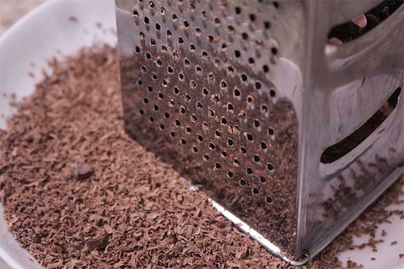Depois despeje o chocolate em um prato, e com o auxílio de uma colher vá mexendo até que ele esfrie, e que a massa de chocolate fique lisinha e bem líquida.