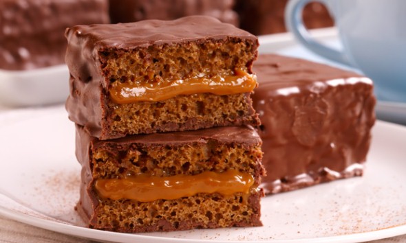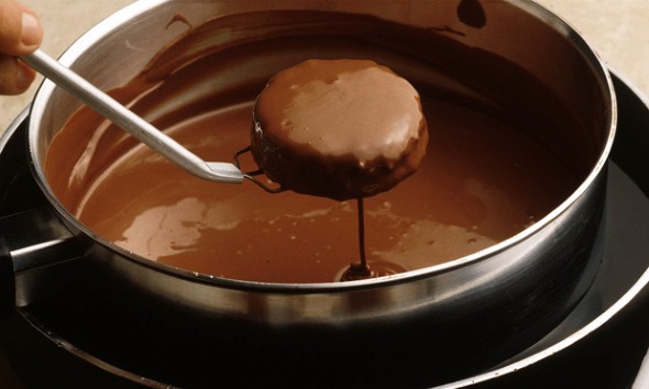 Depois é só passar o pão de mel recheado na cobertura de chocolate, esperar esfriar e você terá deliciosos pães de mel recheados.